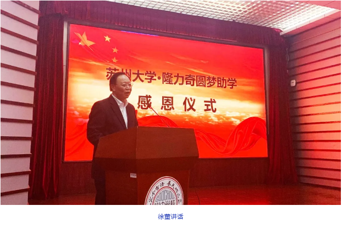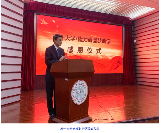 【直报网北京11月16日讯】(隆力奇)11月15日,“莘莘学子梦 浓浓助学情——苏州大学·隆力奇圆梦助学感恩仪式”在苏州大学隆重举行。苏州市关工委主任秦兴元,苏州市关工委副主任、市关心下一代基金会副理事长王溢,苏州市关工委副主任、市关心下一代基金会监事长徐铭阳,苏州大学党委副书记邓敏,公司徐董等领导出席了感恩仪式。