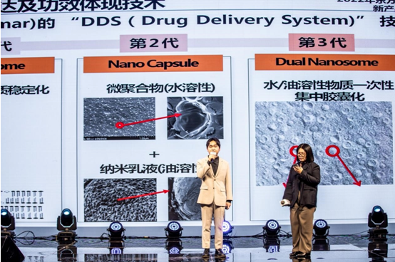 东方琼源匿龄抗衰系列产品作为罗麦科技护肤产品线最新力作,由罗麦科技与韩国科玛北京公司共同合作研发,也成为罗麦科技携手国际一线资源布局抗衰领域的新篇章。而作为世界化妆品研发巨头之一的韩国科玛,为诸如娇兰、兰蔻、BOBBI BROWN、HR等诸多国际一线品牌持续提供服务,拥有国际最新资源和前沿技术背书。在此次发布会现场,韩国科玛北京研究所研发总监李相龍作为东方琼源的研发顾问,首次为大家揭开了匿龄系列产品的神秘面纱。 15年技术沿革与升级,DDS终成“YYDS” “渗透”是护肤品研究领域恒久不变的追逐,它看似普通却占有举足轻重的地位。因为有效成分需要通过深层精准的传导才能更好的发挥有效性,从而使各种肌肤问题真正得到改善,这就是药物传达及功效体现方面的研究。 而此次东方琼源系列产品整体搭载的高效促渗技术,就是从原有的药物传达及功效体现(简称:DDS技术)经历15年沿革与升级而最新诞生的弹性脂质体包裹技术。它与普通脂质体包裹技术的不同之处在于,新技术使脂质体会“变身”,很好的伸缩性可以让包裹着有效成分的脂质体轻易的穿透毛孔和角质层细胞屏障间不规则的缝隙,把有效成分输送到真皮层和基底层,让皮肤吸收到更多的水分和养分,使功效得到最大化的发挥。
