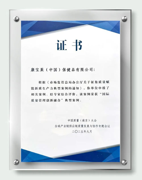 【直报网北京10月13日讯】(康宝莱)全球知名的健康公司康宝莱前不久受邀出席了在南京举办的第六届中国质量大会,全方位介绍了公司以“种子到餐桌”体系为核心的质量管理创新实践。在本次大会的专题会议上,“国际质量管理融合创新”案例征集结果正式公布,康宝莱“种子到餐桌”实践案例经过严格评审,与宝洁等知名公司一起,从150多份提交的案例中脱颖而出,以排名前十的好成绩入选典型案例。 ![]() 康宝莱入选“国际质量管理融合创新案例”典型案例 此次案例征集活动在市场监管总局质量发展局指导下,由中国质量报社在全国范围内开展。案例专家集中评价以案例规范性、实践性、实效性、可复制性,注重理论探索和实践创新相结合为评价标准。典型案例严格按照专家打分确定结果。 ![]() 专题会议现场 中国质量大会是我国质量领域规格最高、规模最大、影响最广的国际性盛会。本届大会由国家市场监督管理总局、江苏省人民政府联合主办,以“质量:赋能新质生产力”为主题,邀请各方代表共同探讨新形势下的热点质量话题和质量管理前沿内容,凝聚质量共识,促进质量合作,加快质量变革,推动全球经济高质量发展。此次盛会共汇聚了约600位与会代表,共同参与这一质量领域的国际对话。 康宝莱全球产品开发高级副总裁郑群怡博士在“全球产业链供应链质量发展与协作”专题会议上向与会嘉宾介绍了康宝莱“种子到餐桌”质量管理体系,以及近年来公司在全球范围内质量管理领域的创新实践。 ![]() ![]() 康宝莱全球产品开发高级副总裁郑群怡博士在大会“全球产业链供应链质量发展与协作”专题会议上发言 康宝莱全球产品开发高级副总裁郑群怡博士还接受了《中国质量报》的直播专访。康宝莱始终将质量视为企业生命线。2010年,公司在全球范围内正式推出了“种子到餐桌”质量管理体系。这一体系包含了14个步骤,从种子到餐桌整个产业链的每一个环节都对产品质量安全严格把控。 中国的长沙工厂和苏州工厂都是康宝莱“种子到餐桌”体系的重要组成部分。全球原料基地长沙工厂建立了从原料采购到生产加工的全流程质量管控体系,通过严格的原料筛选和标准化生产,为康宝莱全球产品提供优质的植物原料保障。苏州工厂核心生产区达到10万级洁净标准,空气需经三级净化处理,并定期监测微生物和粒子。 在质量技术创新方面,康宝莱在2025年取得了一项重要突破,公司自主研发的芦荟素检测方法获得AOAC国际认证,成为全球首个获此认证的芦荟素检测方案。该方法已成为植物原料安全领域的新标杆,彰显了康宝莱用科技创新守护产品质量的承诺。