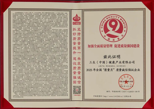 质量兴则国家兴,质量强则国家强。未来,三生将一如既往地响应国家“质量强国”战略号召,主动承担企业社会责任,持续参与行业标准建设与质量诚信倡,共同推动中国健康产业高质量发展,为“健康中国2030”宏伟目标的实现注入源源不断的三生力量