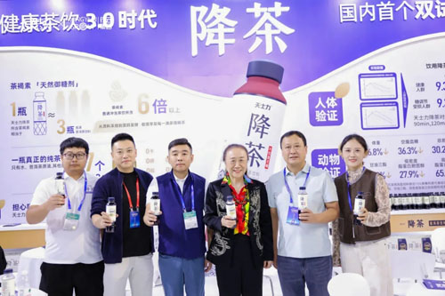 糖酒会期间,天士力降茶在糖酒会的展位成为人气焦点。展位设计现代明快,核心宣传语"开启健康茶饮3.0时代"“爱吃碳水喝降茶”直击消费痛点,而详实的动物人体双试验数据及高于普通冲泡普洱6倍以上的茶褐素含量等核心优势,更是吸引了大量经销商驻足洽谈。