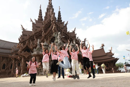 泰有滋味 惠启新程 关键词:历史追溯、自然自洽 01 暹罗古城72府 【直报网北京12月11日讯】(安惠)12月9日清晨,阳光透过窗帘的缝隙,温柔地唤醒了我们。走进暹罗古城72府,仿佛穿越了时空的隧道。这里汇聚了泰国各地的历史建筑和文化精髓,每一座建筑都是历史的低语,每一块石板都记录着过往的辉煌。我们漫步在古城中,感受着岁月的沉淀和文化的魅力,不时发出阵阵惊叹。暹罗古城宛如一部鲜活的史书,每一座建筑、每一尊雕塑都诉说着往昔的辉煌与坚韧。那历经风雨却依然屹立不倒的古老寺庙,以其雄浑的气势和精美的工艺,彰显着对信仰的执着与坚守。 ![]() ![]() ![]() ![]() 02 真理寺 我们从曼谷出发,一路向东,驶向那片被誉为“东方夏威夷”的芭提雅。沿途,风景如画,大家的心情也如这明媚的天气一般,格外舒畅。一场关于文化与自然的双重探索就此展开。 而真理寺,则以它那超凡脱俗的木质结构,诉说着对生命与宇宙的深刻思考。站在寺前,我们仿佛能听到心灵的回响,感受到一种超脱世俗的宁静与和谐。真理寺自1981年始建以来,历经四十余载仍未完工,其意义不在于“完成”,而在于持续探索“真理”本身。这种对永恒价值的追求,给我们安惠带来启示,启示在事业发展中需坚守初心,不被短期利益迷惑。正如真理寺以“弘扬文化,追寻真理”为使命,我们也应在市场浪潮中保持战略定力,以长期主义思维构建可持续的竞争力。 ![]() ![]() ![]() ![]() 03 爽泰庄园 傍晚时分,我们来到了爽泰庄园。这里绿树成荫,花香四溢,仿佛是一个世外桃源。安惠伙伴在这里感受泰式风情,享用帝王餐,跟大象互动,放浪漫花灯……大家欢声笑语不断,气氛热烈而温馨。 ![]() ![]() ![]() ![]() 这一天, 是古城与真理的交响, 是历史与现代的碰撞, 更是我们与泰国文化深度对话的开始。 让我们带着这份美好的记忆, 继续前行在泰国的旅程中。 乐享图片直播 ![]() 更多美照 扫码欣赏 乐享的意义