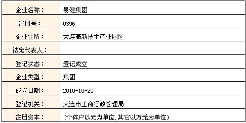 资料来源:大连市工商行政管理局 母公司简介:易健集团 易健集团的前身为易健公司,成立于2008年,致力于利用先进的生物技术和不断再生的草药资源为人类提供绿色天然的健康产品和高品质的健康服务,推动健康产业的国际化、规模化发展。 下设六家子公司 易健(大连)生物科技发展有限公司 以研发、生产保健食品、生物制品、健康产品为主的先进GMP生物科技企业,获得ISO9001质量管理体系认证和ISO22000食品安全管理体系认证、QS食品生产许可证等多项认证。 易健兴农(大连)生物制剂发展有限公司 以自主研发绿色农业生物产品为先导,集农业生物技术研究、农用微生物制剂及生物农药的生产销售于一体的综合性生物科技企业,利用生物农产品广阔的市场发展空间、结合独有的研发力量,迈出科技兴农的步伐,为实现土壤改良、帮助农民朋友增收减支、推动传统农业向绿色农业、生物农业转化而努力。 易健(大连)生物肥研发有限公司 主要从事生物肥料、生物肥料添加剂及相关配套产品的研发生产、有机肥生产技术的推广等,以服务“三农”为宗旨。 易健(大连)生物制品销售有限公司 以健康体验馆和健康服务站为销售核心、体验式营销为市场开拓手段,采取创新的经营模式,与国内国际知名生物科技企业的联盟合作,通过联盟实现资源共享,技术优势互补,让易健健康产品深入到千家万户。 大连易健电子商务有限公司 定位于以先进的互联网及IT技术服务于生物科技产业,业务涉及在线生物科技产品销售、行业管理软件开发、企业内部信息化建设、健康资讯门户网站运营及行业内SNS社区运营、移动互联网应用等诸多领域,获得大连市经济和信息化委员会的软件产品登记认定证书,并取得了不俗的销售业绩。 易健(大连)广告策划有限公司 将多种宣传手段如促销、事件行销、公关、网络互动与传统媒体有效整合,将方案彻底执行,提供全方位传播策划服务,弘扬健康文化。 易健集团在大连旅顺、大连花园口经济区、天津开发区拥有三个综合性生产基地;总投资额8.24亿,创造就业岗位千余个。 易健集团与国内外多家知名科研机构与企业开展了广泛合作,研发、生产并销售的基于中草药精髓的健康产品,包括生物食品、保健品、日用品、生物肥等已逾百种,业务方向广泛覆盖生物科技、电子商务、进出口贸易、信息服务、广告策划等健康产业领域,逐渐形成一套自主创新的产业链、销售链、服务链,促进了健康产业领域内产品升级、市场升级及产业结构升级。 |