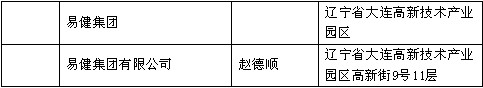 易健(大连)生物科技发展有限公司 公司简介: 以研发、生产保健食品、生物制品、健康产品为主的先进GMP生物科技企业,获得ISO9001质量管理体系认证和ISO22000食品安全管理体系认证、QS食品生产许可证等多项认证。 企业注册基本信息: