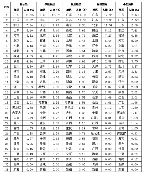 附表5 各地区5类直销产品直销销售额占比