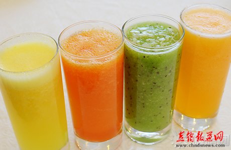 鲜榨 果汁 我们不想打破你关于果汁的“幻想”,但是把果汁当水喝真的不像你想的那么健康。如果你都是自己制作果汁,那你肯定知道,想要榨出500毫升果汁可能要用到几斤甚至十几斤的水果。理论上,我们可以从一打水果蔬菜榨出的鲜榨果汁中获得等值的营养元素,但问题是果汁中同样含有浓缩的天然果糖,尽管榨汁后将果肉纤维分离出去可以降低果糖的吸收,但是果汁中的果糖喝下去仍然会迅速被血液吸收。所以减肥用果汁作为代餐?除非你在做流食排毒疗程,否则你可能不仅看不到效果,还可能营养不良。 |