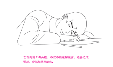 此外,左右两侧歪着头睡,或者把额头顶在手臂上睡都会使颈椎和腰椎过度屈曲,大大超过了它们正常的生理曲度。如果长时间保持这些不良姿势,会使颈椎和腰椎的肌肉紧张,造成颈部、背部和腰部酸痛,严重的还会导致颈椎间盘或腰椎间盘突出,引发椎间盘突出症。 还有一些办公族喜欢躺在沙发上午睡,这样的姿势看似舒服,其实对脊柱的损害也不小。沙发通常较柔软,人躺在上面,颈椎、胸椎和腰椎正常的生理曲度会发生改变,特别是将头枕在沙发扶手上睡觉,颈椎长时间保持过度前屈的姿势,不仅容易落枕,还会造成颈椎劳损,阻碍颈椎动脉供血,容易出现头痛、恶心等症状。