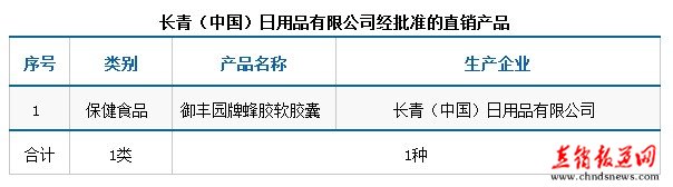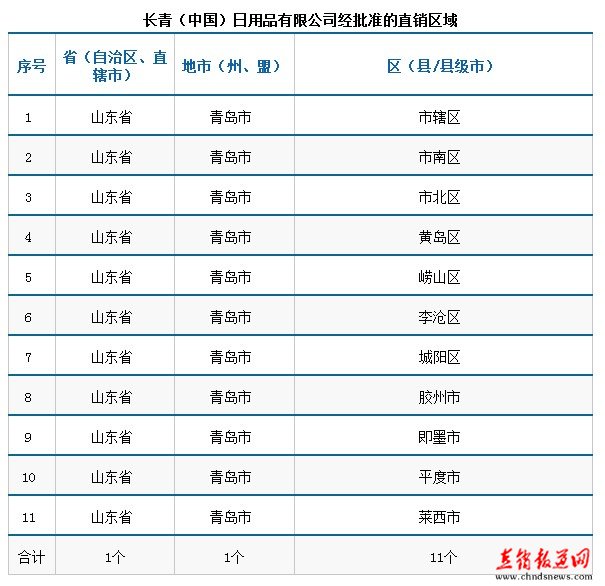 【直报网12月26日讯】(商务部直销行业管理信息系统)商务部直销行业管理信息系统网站12月19日公布,长青(中国)日用品有限公司获得直销经营许可。同时获批的直销区域为青岛市11个区,1款保健食品获批为直销产品。长青此番获牌为2013年第9张直销牌照,至此拿牌企业增加到41家。