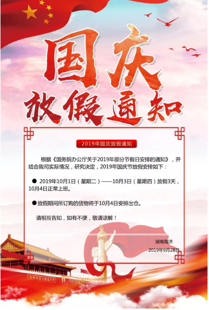 【直报网北京9月29日讯】(海济生物)海济生物2019年国庆节放假通知