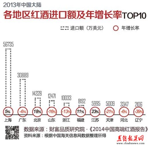 图7:2013年中国大陆红酒进口均价排行榜 从中国红酒进口的区域变化可以一定程度看出中国红酒消费的区域特点,即二三线城市或者一些不发达地区,红酒消费在商务宴请中的比例比一线发达城市更大,而当商务宴请消费受到影响的时候,则很明显体现在消费需求锐减,特别是高端红酒消费需求锐减。而一线城市的消费者因为具有更国际化更新潮的生活方式,红酒消费多为家庭消费,所以,其红酒进口受大环境影响不大,继续稳步发展。 |