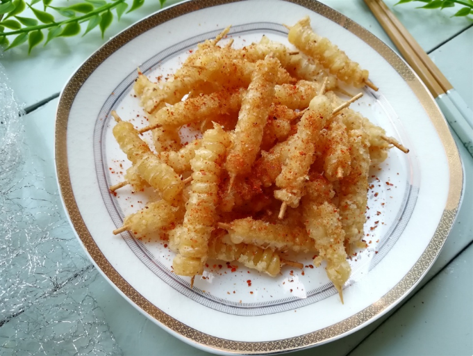 【直报网北京2月12日讯】(搜狐美食)玉米新吃法,比烧烤店烤的好吃,家里来客人,下酒当零食都不错,烧烤店有一道菜品,烤玉米粒挺受欢迎的,喜欢去烧烤店点玉米串的,教你自己在家做,味道比烧烤店的还好吃,做法还新颖,炸过后的玉米,是金黄酥脆的味道,大人小孩都喜欢吃,家里来客人,下酒当零食都不错,肯定受欢迎,你也学会它,下面分享下做法: 【香炸玉米串】 材料:玉米2穗、油适量、牙签适量、淀粉2汤匙、烧烤料适量、白糖1汤匙 做法: 1.准备好所需材料,玉米用速冻玉米或者新鲜玉米,玉米粒罐头都可以,烧烤料就是用辣椒粉,孜然粉,芝麻粉混合成的调料,如果没有只用辣椒粉也可以。 2.将玉米切成段,长度比牙签的长度稍短一些就可以 3.用牙签插进玉米粒中间,将玉米粒穿成一排,其余都依样穿好 4.用刀沿着玉米粒底部,将玉米串,一串一串的都切下来,如果是散玉米粒用牙签穿成串就可以了 5.将玉米串加入淀粉,拌匀,使玉米串表面均匀的裹上一层干淀粉,放置5分钟,使淀粉回潮,炸制时淀粉不会脱落 6.锅加油烧热,下入玉米串炸制,掌握不好油温,可以先下入一串玉米串炸制,下入后玉米串周围马上起密集的小泡泡,油温就可以了,将玉米串表面炸制金黄,捞出,控净油