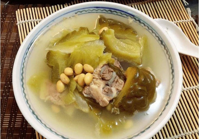 【直报网北京9月27日讯】(搜狐美食)天气炎热,很多人都会出现精神不振、全身无力、食欲不振等中暑症状。这时,食物中多一些清热解暑的成分,不仅可以减轻疲劳,还可以缓解因过热带来的不适。所以今天我想分享一下苦瓜酱油汤。此汤不仅健康美味,还能清心明目!苦瓜和这个食物一起煮,蛋白质比鸡蛋还大,毒素排出,体重慢慢减轻。 【黄豆苦草菇食谱】 第一步:先将苦瓜洗净,去掉果肉,切成小块备用。 第二步:锅中加入适量水,煮沸,倒入苦瓜,焯水2分钟捞出。 第三步:准备一块猪骨。清洗干净后,用冷水焯一下,撇去浮沫,取出备用。 第四步:准备炖菜,加入开水,将猪肉和黄豆放入锅中煮约50分钟。 第五步:将苦瓜放入锅中,继续煮20分钟,加少许盐调味即可食用。 苦瓜含有大量的维生素C。经常食用可以提高免疫力、预防疾病、保护心脏、提高机体应对压力的能力。其次,苦瓜中的苦味元素是一种可以燃烧脂肪的物质。经常食用可以防止体内脂肪堆积,排出毒素,有很好的减肥效果。另外,苦瓜的生物碱含量比较高,可以增进食欲、健脾醒胃,特别适合在温暖的季节食用。
