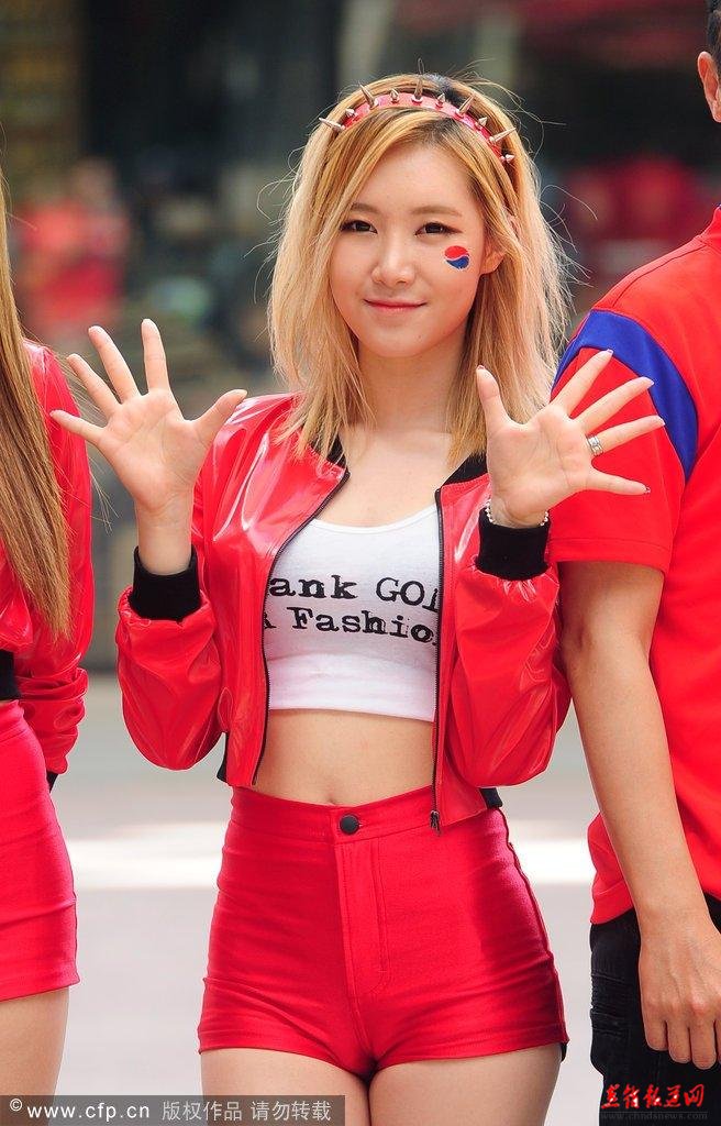 韩美少女组合助威世界杯 牵手男足献唱(6)