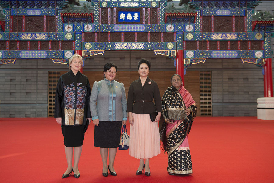 【直报网11月11日讯】(凤凰网)在每年的APEC领导人非正式会议上,欢迎晚宴都是“重头戏”。今晚,奥林匹克公园将燃起绚烂烟花,国家主席习近平和夫人彭丽媛将在国家游泳中心(水立方)为与会各经济体的领导人和代表举行欢迎晚宴和文艺演出。第一夫人会穿什么样的衣服亮相也引起了人们的关注。由东道主向参会领导人及太太团提供统一样式、具有本地特色的休闲服装,是APEC领导人非正式会议一条不成文的规定。日前凤凰时尚专访APEC服装设计师,就此次太太团们的服装设计理念进行了阐述,设计师认为此次APEC会议服装设计将蕴含东方美学,太太团女装设计则可能用“彭丽媛式”。图为9日上午,习主席夫人彭丽媛邀请孟加拉国总统夫人、蒙古国总统夫人和上海合作组织秘书长夫人到首都博物馆参观。 |