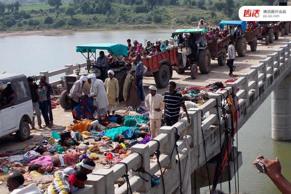 2013年10月13日,印度中央邦一座寺庙附近桥面发生踩踏事件造成109人死亡。事故发生时,桥上至少有2.5万人前往寺庙朝拜,庆祝杜尔加女神节。一些朝拜者为了插队,故意散布“桥快要断了”的谣言,导致民众惊慌并造成踩踏事件。