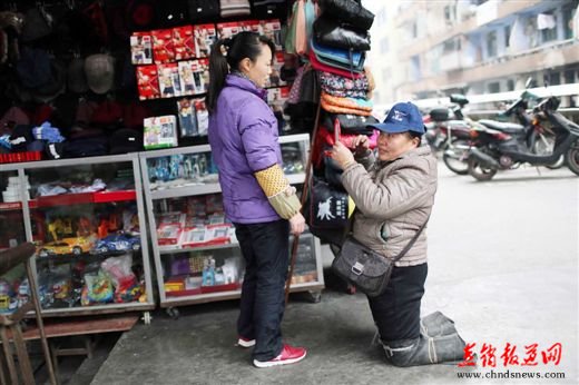 在购物 1月22日,胡凤莲在街上买帽子。她说这样不会弄脏头发,每天可节省不少洗头的时间。