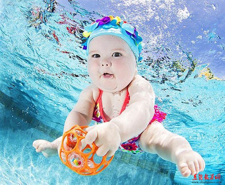 9个月大的瓦伦缇娜(Valentina)拿着她的玩具在水下嬉戏。