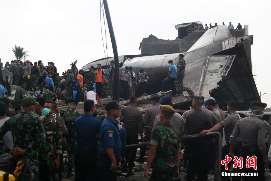 【直报网7月1日讯】(新华网)6月30日,印尼空军一架“大力神”C-130飞机在苏门答腊岛棉兰市一居民住宅区坠毁,目前遇难者人数已升至113。印尼空军发言人称,目前救援工作正在进行中。顾时宏 摄