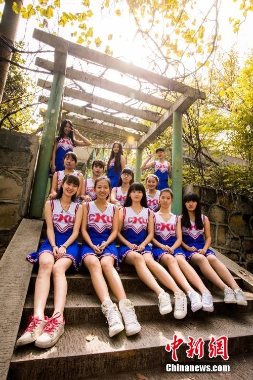 大学啦啦队宣传照走红 学员秀大长腿(3)