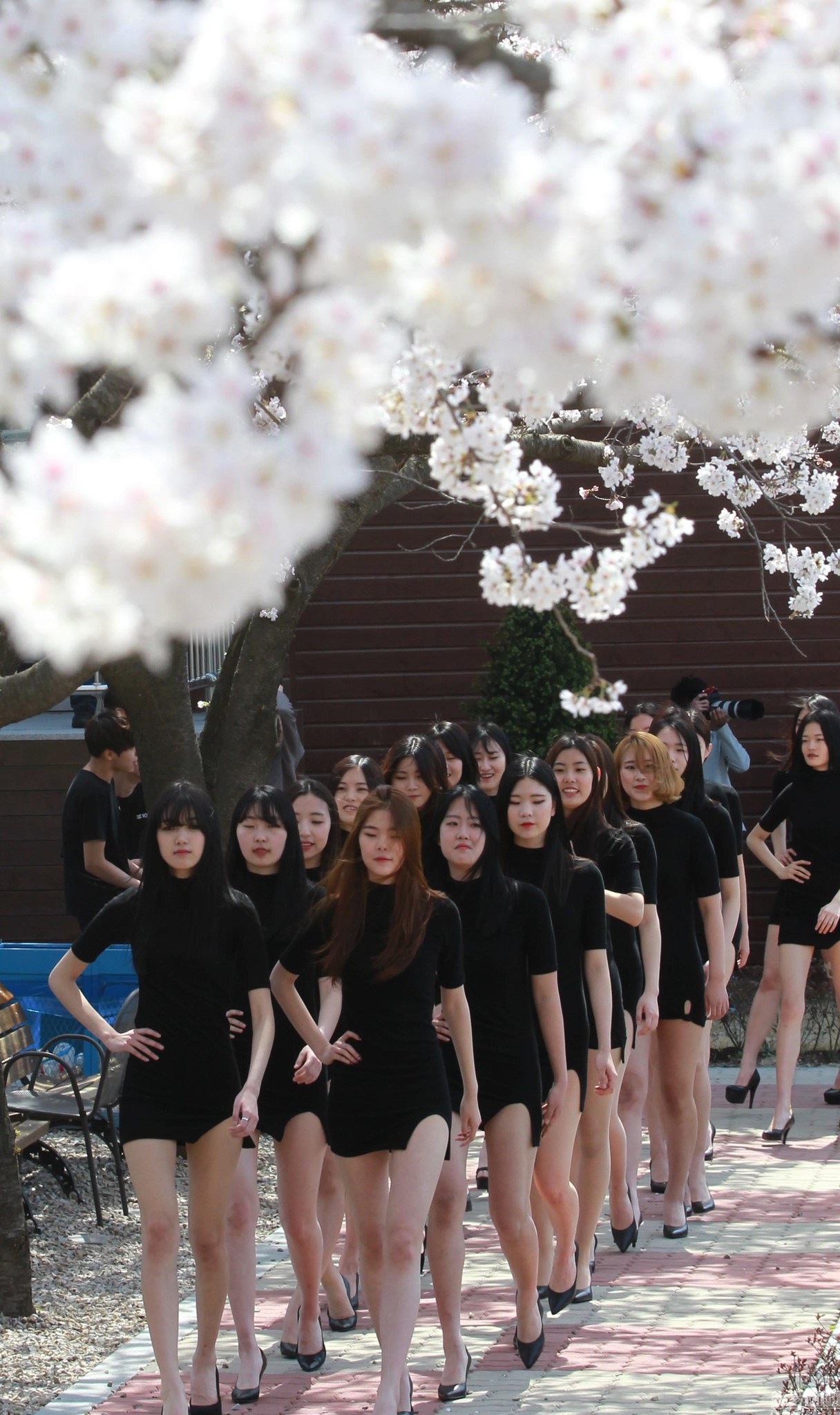 (原标题:韩国准模特樱花树下上课 秀大长腿)