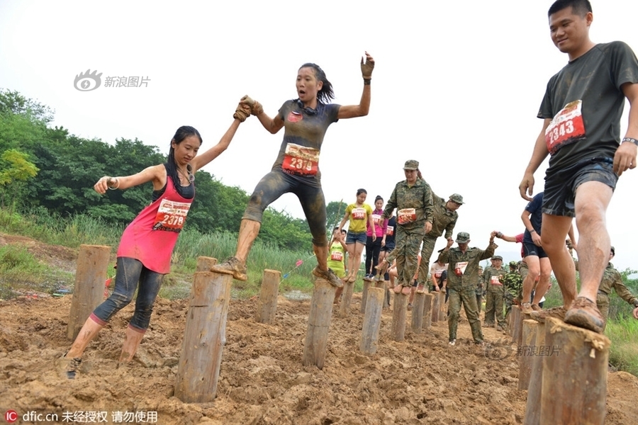 南京3000选手泥泞跑 比基尼美女清凉助威(5)