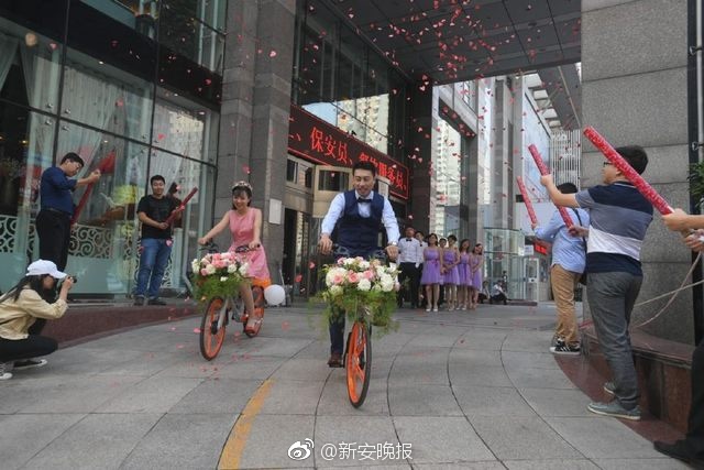 (原标题:辽宁首对骑共享单车结婚新人:车队共30台单车 费用只有30元)