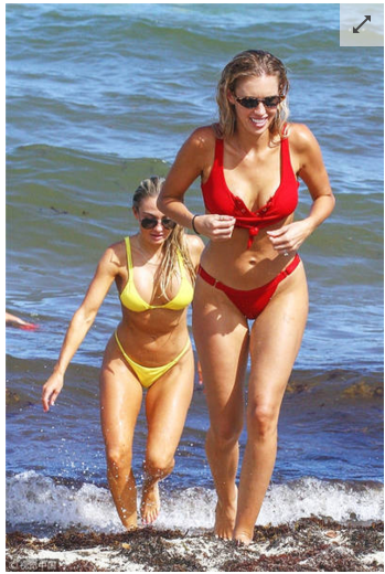 超模凯拉·蕾·里德(Kayla Rae Reid )和老公里安·罗切特(Ryan Lochte)现身海滩度假,游泳妻子凯拉·蕾·里德身穿比基尼,露酥胸秀美腿尽显火辣身材,老公里安·罗切特赤裸上身腱子肉发达。