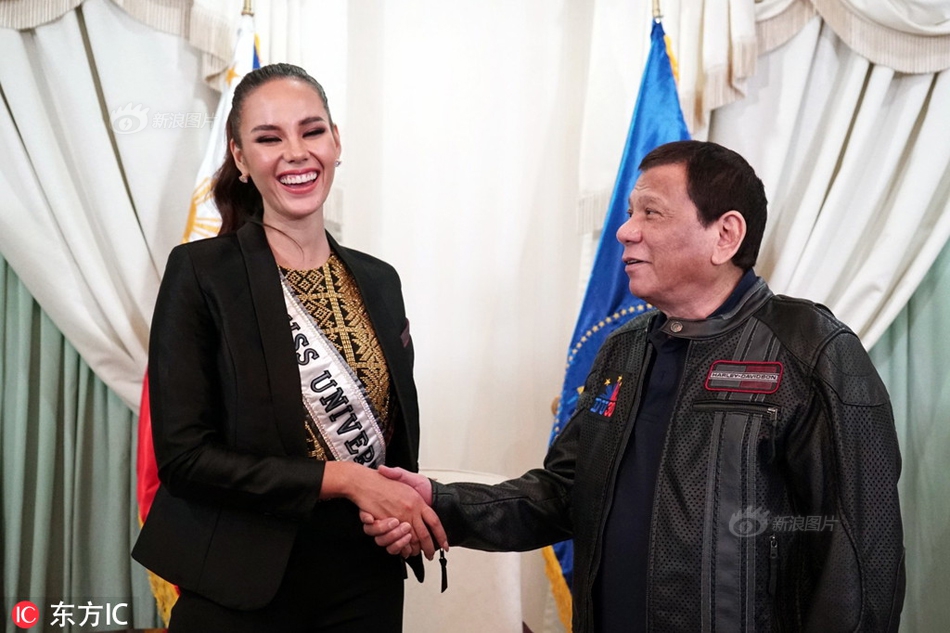 【杜特尔特接见2018环球小姐 “死盯”眼神亮了】当地时间2018年12月20日,马尼拉,菲律宾总统杜特尔特当天接见了2018年环球小姐卡特里奥娜·格蕾。12月17日,2018年度环球小姐在泰国落下帷幕,来自菲律宾的卡特里奥娜·格蕾摘得桂冠。 |
