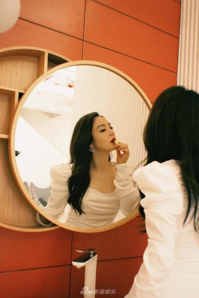 (原标题:董璇长发卷曲散发复古韵味 穿白裙秀婀娜身材对镜涂唇)