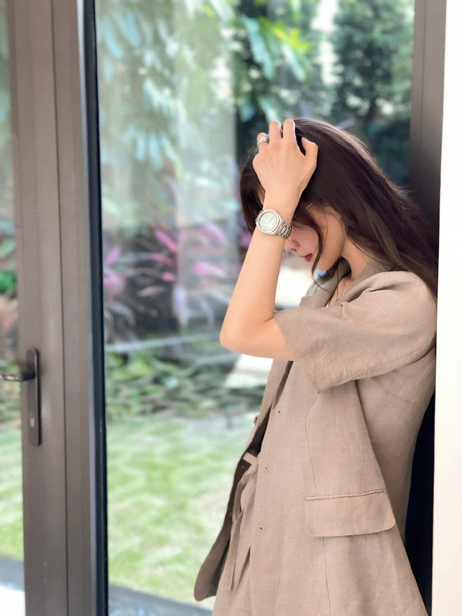 【直报网北京7月30日讯】(新浪图片)7月29日,刘诗诗工作室释出一组收工花絮。照片中,刘诗诗身穿素色短袖西装搭短裤,斜倚在落地窗前温柔似水,侧颜美丽动人,戴着墨镜霸气而不失优雅。