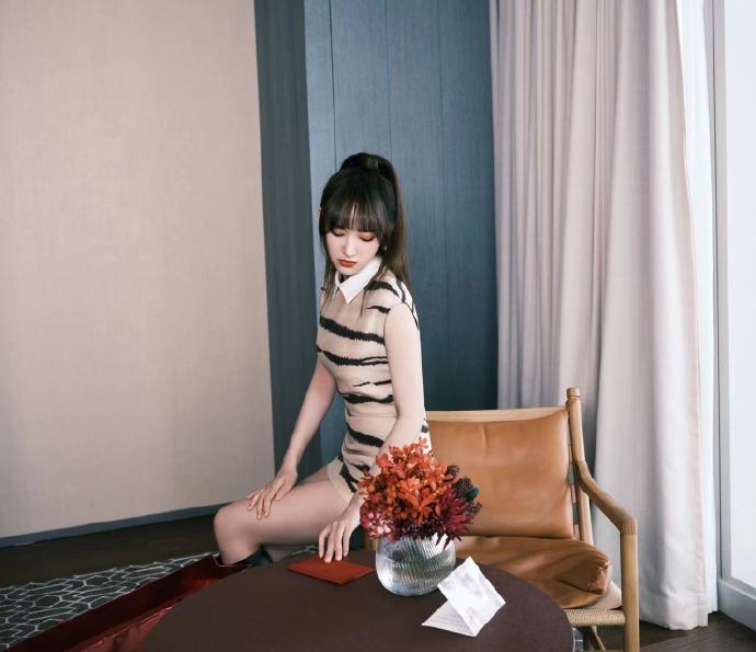程潇穿虎纹连衣裙尽显好身材 扎高马尾配长筒靴飒气利落(3)