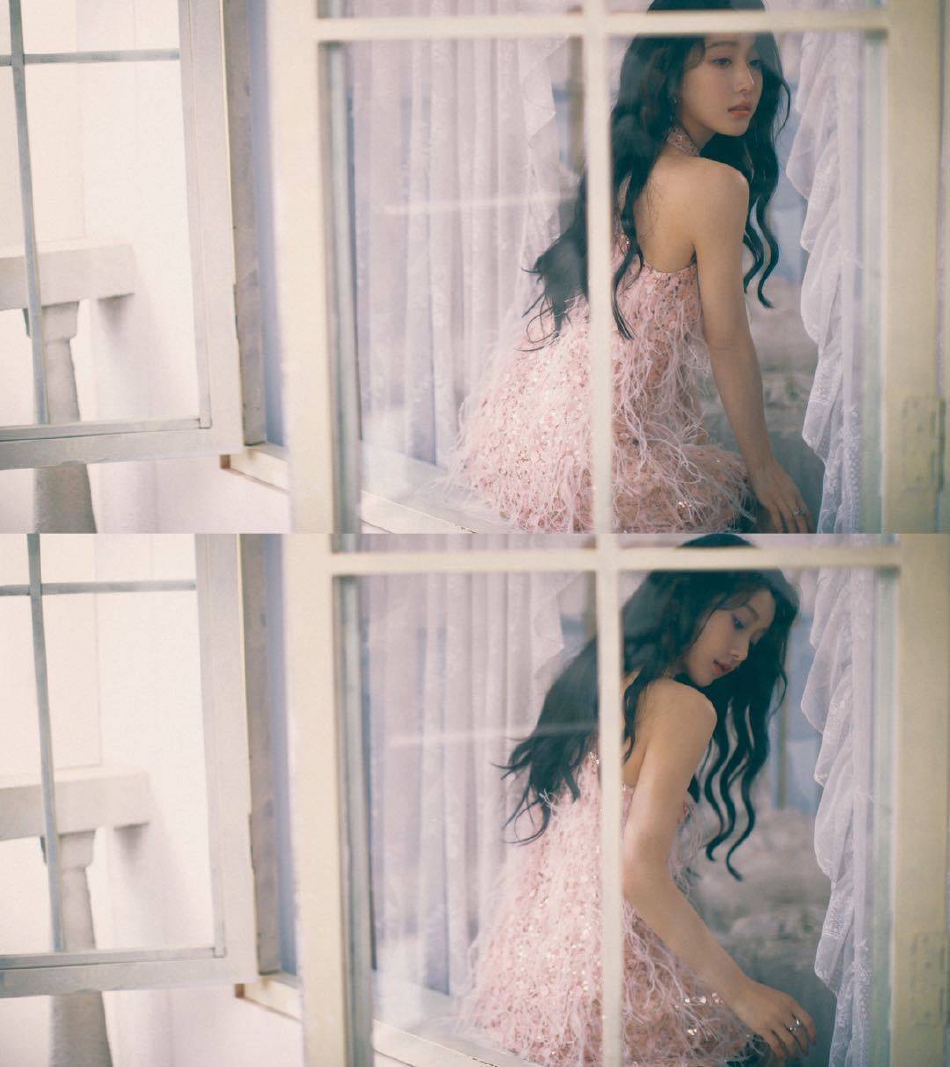姜贞羽穿粉色羽毛裙梦幻甜美 亮片闪烁十分吸睛复古(7)