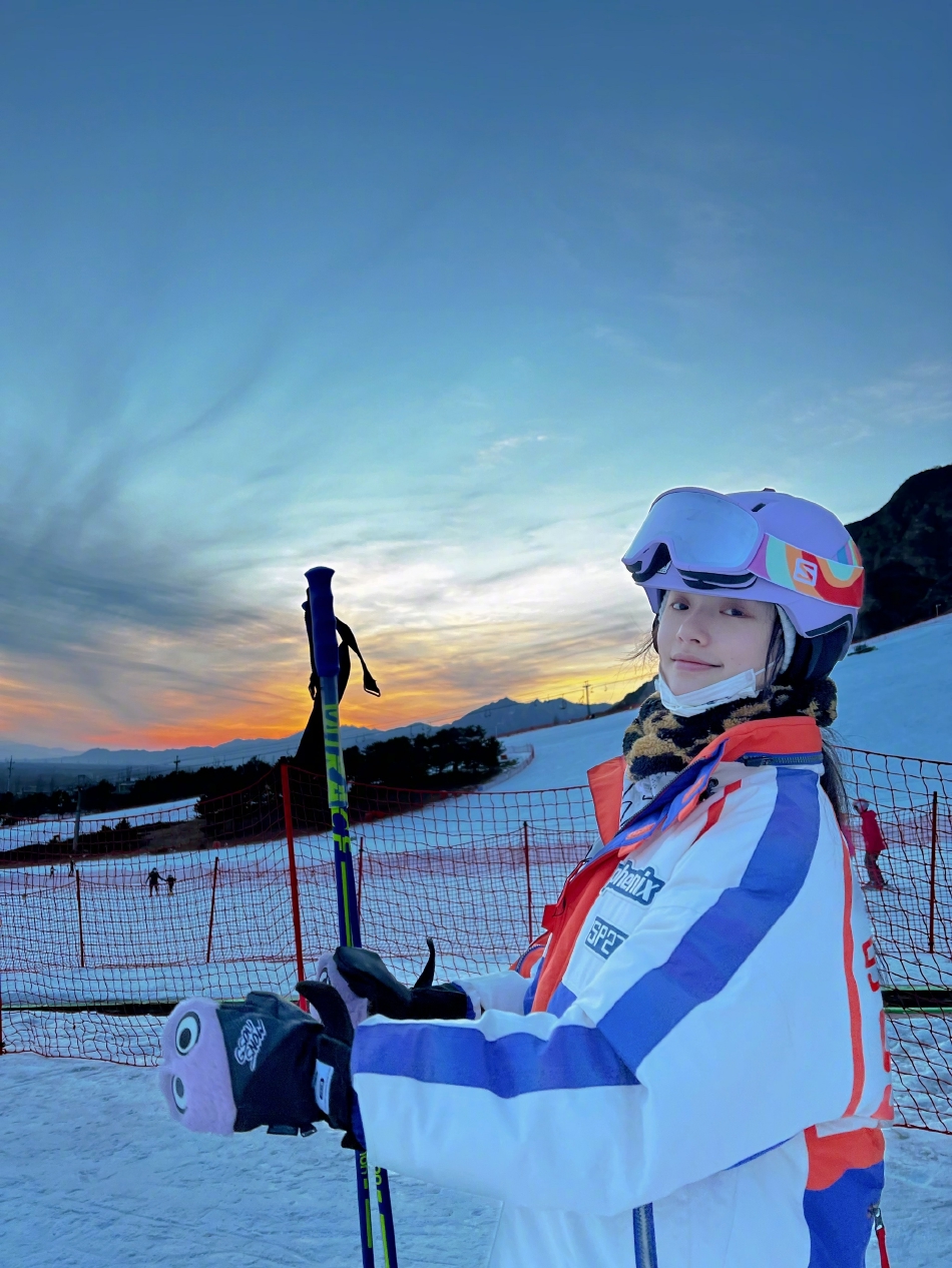 今天是双板女孩!林允晒滑雪照素颜甜笑元气有活力(4)