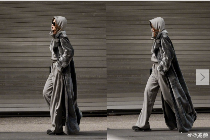 戚薇现身纽约时装周潮范十足 帽衫搭配大衣反季节穿搭(4)