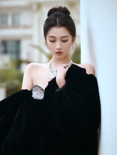 关晓彤穿丝绒裙秀美腿 化身优雅黑天鹅法式浪漫(5)