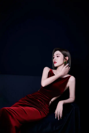 唐艺昕穿红丝绒露背裙性感妩媚 红唇烈焰尽显熟女姿态(5)