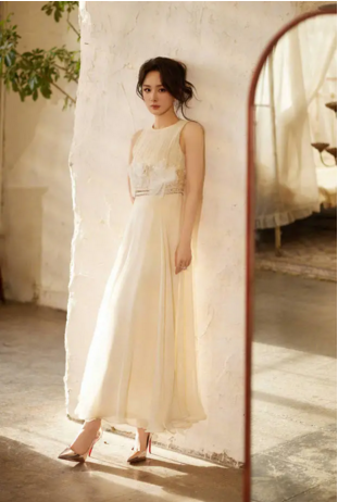 杨幂穿长裙搭白花腰饰,尽显清纯时髦范(10)