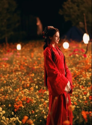 迪丽热巴一袭红衣明艳动人 在花海中垂眸楚楚动人(3)