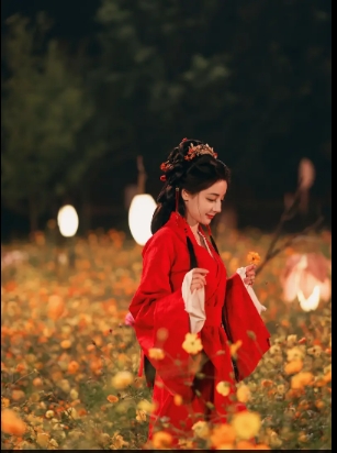 迪丽热巴一袭红衣明艳动人 在花海中垂眸楚楚动人(6)