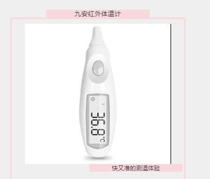 传统腋下、口腔的测温,过程需要数分钟的等待,宝宝容易哭闹和抗拒,额温测量则更多适用于夜间勿扰测温。相比之下,耳温测量部位鼓膜的温度是相对恒定的,可以直接体现人体内部温度,过程仅需几秒,对宝宝的干扰很小。九安红外体温计搭载德国海曼热电堆传感器技术。通过识别由鼓膜发射的红外辐射能进行体温读取,按下测量键1秒内,将进行多次数据采集,配合专业运算处理,准确度达到±0.2℃。除了内置热电堆传感器以外,耳温计内部还增加了室温传感器,对体温采集进行了精度的修正,减小环境温度的影响。 测温时,将探头置于耳道之内,对准耳膜,轻按测量键,听见“滴”声后测量结束,宝宝配合更轻松。背光大屏显示,即使夜晚没有照明的情况下也可以清晰读数,避免误读。当测量结束后,若体温<37.8℃时,屏幕会呈现“笑脸符号”,当体温≥37.8℃时,屏幕呈现“哭脸符号”,及时应对宝宝的发烧状况。10组的数据记忆功能,方便爸妈对宝宝的前后测量数据进行对比,及时掌握宝宝的体温变化趋势。 如此方便快捷的家庭医生,还不先买为敬吗? 结语