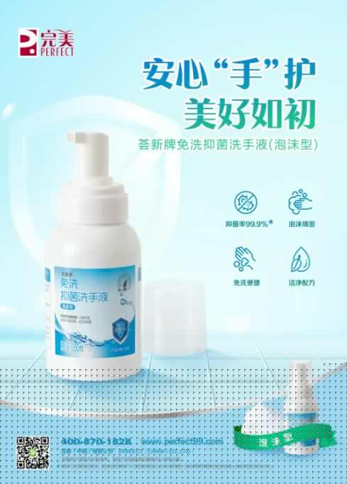 【直报网北京3月24日讯】(完美)安心“手”护,美好如初。据了解,近日,完美荟新牌免洗抑菌洗手液(泡沫型)将隆重上市。 荟新牌免洗抑菌洗手液具有抑菌、绵密泡沫、免洗便捷等优点,饭前饭后、上妆卸妆、外出前后洗一洗,轻松摆脱细菌烦恼。