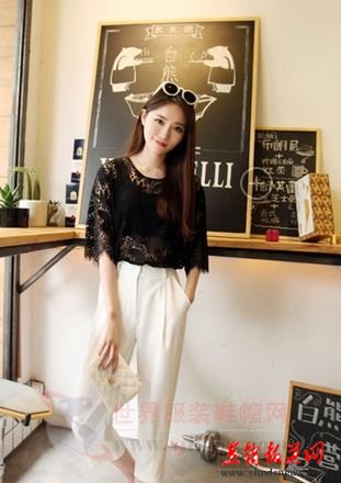 蕾丝透视衫搭配白色哈伦裤,颜色冲击强烈,黑白分明颇具欧美风。做工精细细节处理考究,拥有着微性感的小味道。裤装的休闲与性感蕾丝搭配不但丝毫不减女人味反增洒脱之感。 |