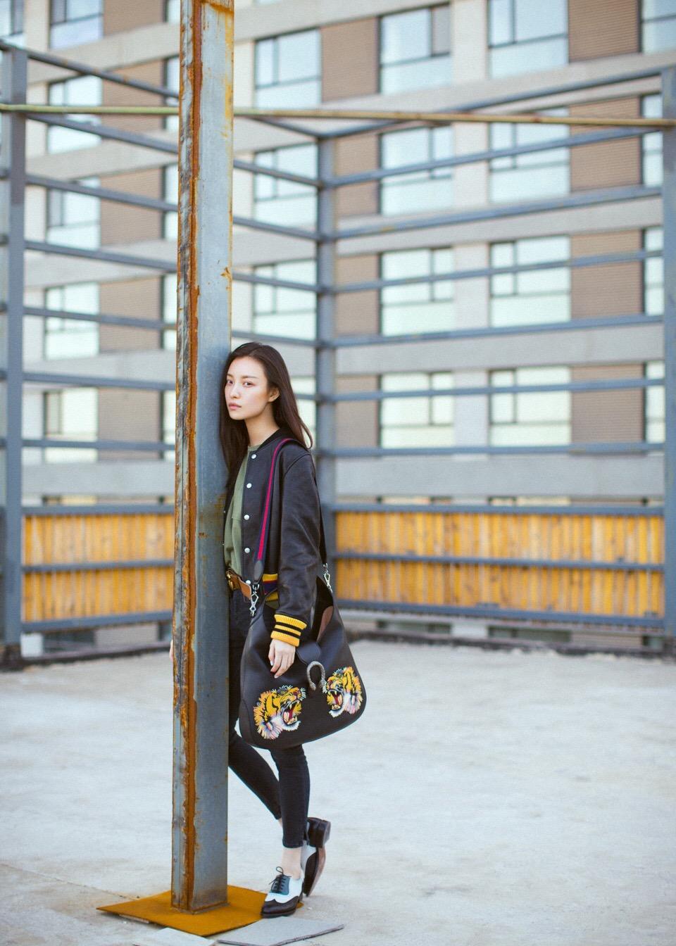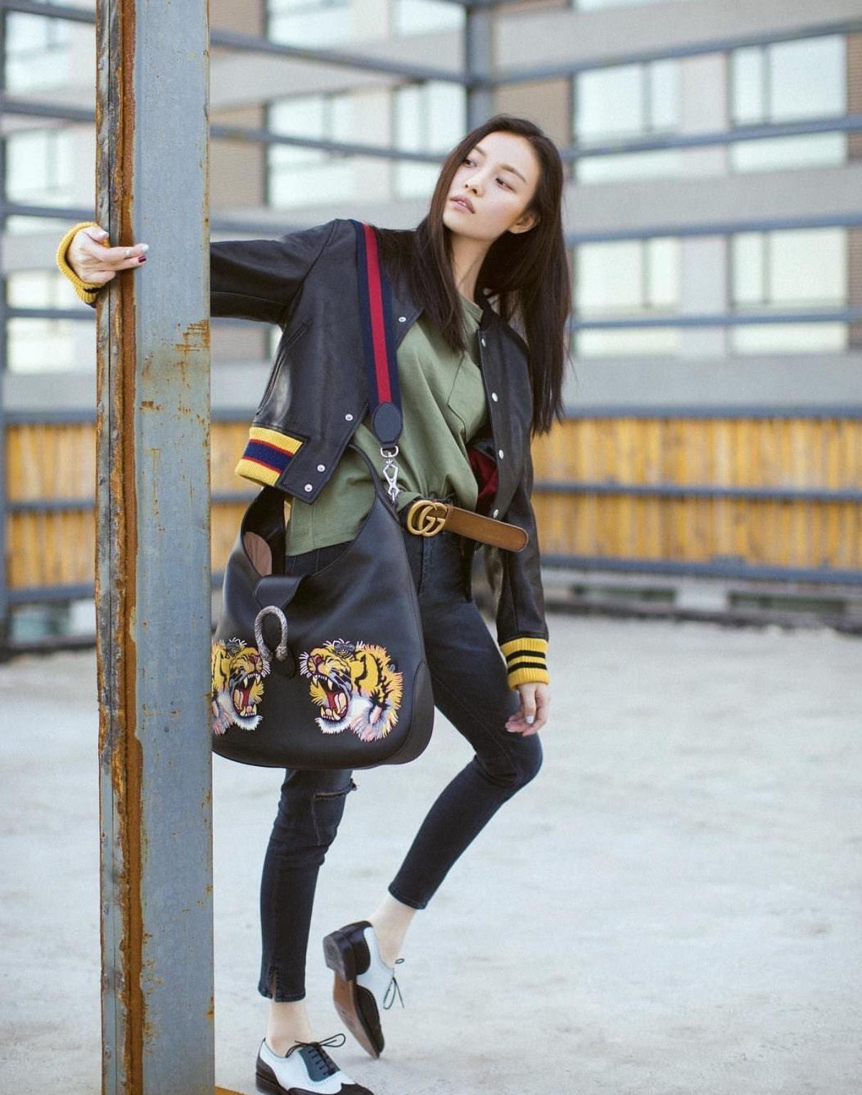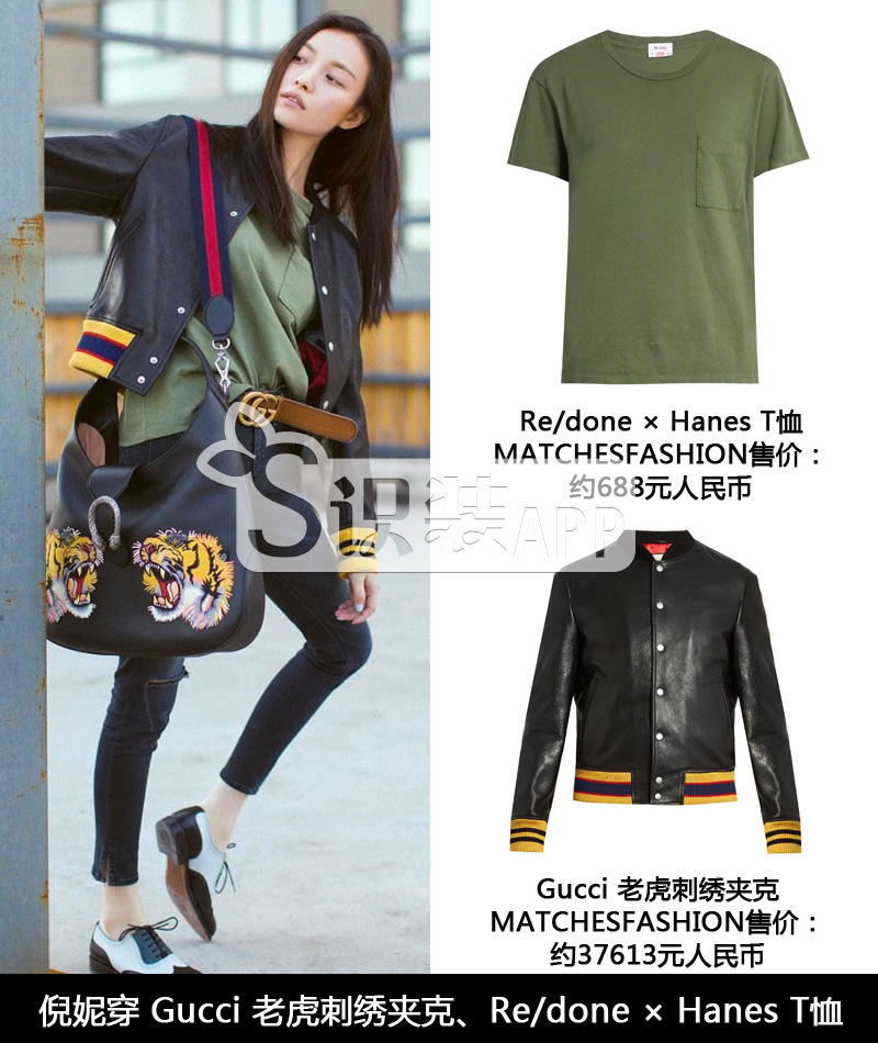 【直报网北京5月8日讯】(凤凰网时尚)2017年4月26日,倪妮工作室微博晒出一组照片,喵总身着Gucci老虎刺绣夹克内搭Re/done × Hanes T恤,Gucci Dionysus 肩背包配上双G腰带,虎头刺绣个性十足。