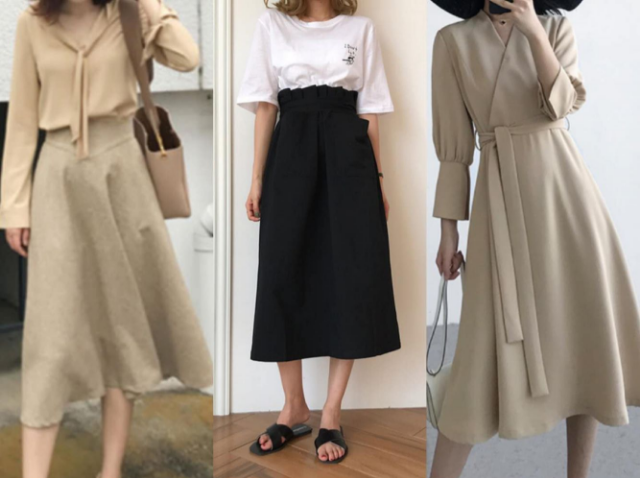 A字长裙版型挺拔,宽松飘逸,藏肉效果那是杠杠的呀,绝对是帮助姑娘们遮住小粗腿的必备利器。姑娘们要是想要休闲风格,随意搭上一件T恤,配上一双拖鞋,慵懒气质立显。要是需要出席比较重要的场合,一件法式衬衫搭配A字长裙,高跟鞋加持,再背上一个小方包,知性优雅。 露出最瘦的部位