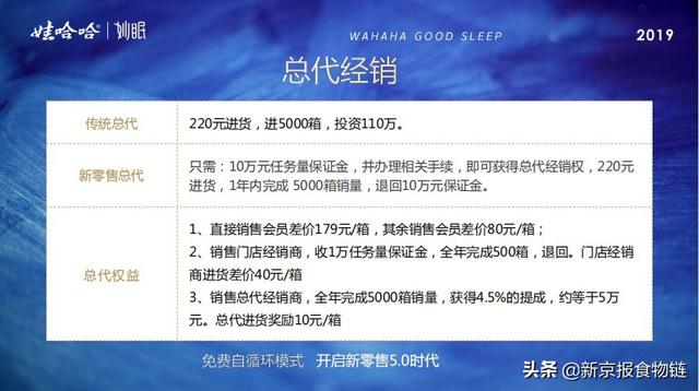层级销售方式存疑 不仅产品广告涉嫌虚假宣传,娃哈哈妙眠的销售方式也受到多位消费者的质疑。有社交平台用户认为娃哈哈妙眠涉嫌传销。 一份《免费自循环·区域新零售》的宣传材料显示,娃哈哈妙眠分为会员、门店、总代理3种销售方式。其中,会员购买的价格为399元/箱,复购320元/箱。分享一个会员奖励99元,分享会员复购,返自己20元仓券,可购买妙眠抵用。 门店模式方面,只需要缴纳1万元保证金,并办理相关手续,即可获得门店经销权,进货价为260元/箱,一年内完成500箱销量退回1万元保证金。据一名代理商介绍,娃哈哈妙眠门店方面,推荐1个门店人员(奖金)5000元,同时平级出货每箱(奖励)10元。每年推荐10个就是5万元,这10个人完成业绩,每个人货款还可以赚5000元,10个人就是5万元。推荐10个399会员,完成免费喝拼团就是40人,系统培训帮会员裂变保守500个会员。 总代理方面,传统总代需要220元/箱的价格进货,进5000箱,投资110万元。新零售总代只需缴纳10万元任务量保证金,并办理相关手续,即可获得总代经销权,220元/箱进货,1年内完成5000箱销量,退回10万元保证金。 据上述代理商介绍,总代赚钱方式有多种。其中,招一个同级别的,卖的每箱货可获得10元,完成任务后,可赚5万元。总代直接招1万元的门店代理,只要门店代理完成一年的500箱的量,总代再退门店代理保证金,门店代理卖每一箱,总代可以赚40元的差价。该代理商还表示,对于这1万元,门店代理如果再招一个1万元的门店代理,完成任务后,总代还有5000元可以拿,“5000(元)也是无限拿,不管底下隔了多少层。” 此外,总代还可以直接零售给会员,按照总代拿货价是220元/箱算,卖给会员一箱就赚180元。“你的会员再招会员你有80(元),这个80(元)是无限拿,不管底下多少个会员,你都有80(元)。” 备受争议的代理模式,也暴露了娃哈哈妙眠运营的短板。6月13日,新闻栏目《1818黄金眼》题为《交了十万块钱做“娃哈哈妙眠”总代,再去总部却急得满头大汗……》的报道称,一位孙先生在娃哈哈妙眠全国运营中心签了一份代理协议,交了10万元保证金,随后就没了下文。孙先生遇到了杭州娃哈哈妙眠全国运营中心市场部的范总。对于孙先生提供的经销商协议,范总承认是娃哈哈妙眠的,但他又称,代理商“可以拿着这个协议给别人去做”。 对于在娃哈哈妙眠全国运营中心签署协议,范总表示,该运营中心是对外开放的,允许人员进去参观。但是当该栏目记者要进去的时候,却遭到工作人员阻拦。随后,杭州滨江高新派出所的民警赶到了现场,警方已经介入调查。 新京报记者在网络平台还看到,有自称做娃哈哈妙眠的人员在缴纳费用后,想要退款无门。该人士称,自己交了1万元做门店代理,但产品根本卖不动,只能去招商拿奖金,如果产品卖不动,就要“说谎话骗别人”来招商。 另一位与其互动的人士也称,交的1万元押金是跟总代签的,但没有妙眠或娃哈哈的公司盖章,而且要必须销售500箱才能退款。“这1万元是不包含产品的,拉一个代理奖励5000(元),这是活生生的霸王条款。” 有业内人士告诉新京报记者,传销的主要3个特征为:缴纳入门费或购买商品(或认购一定数额商品)、发展下线形成层级关系、层层返利(自己的下线投入都有自己的提成)。根据《禁止传销条例》,以上述3种形式非法牟取利益,可判定为传销行为。“收取门槛费,层层计酬,拉人头形成层级关系,是直销双轨制的主要特征,但也是传销三大特征。” 新京报记者拨打娃哈哈妙眠产品上的400电话进行咨询,客服人员明确表示,娃哈哈妙眠属于娃哈哈旗下产品,由娃哈哈集团研发与生产,山东仓汇贸易有限公司独家分销。新京报记者查询商务部直销行业系统信息发现,山东仓汇贸易有限公司并无直销资质,娃哈哈妙眠白桃风味酸奶饮品也未收录在直销产品列表之中。 |